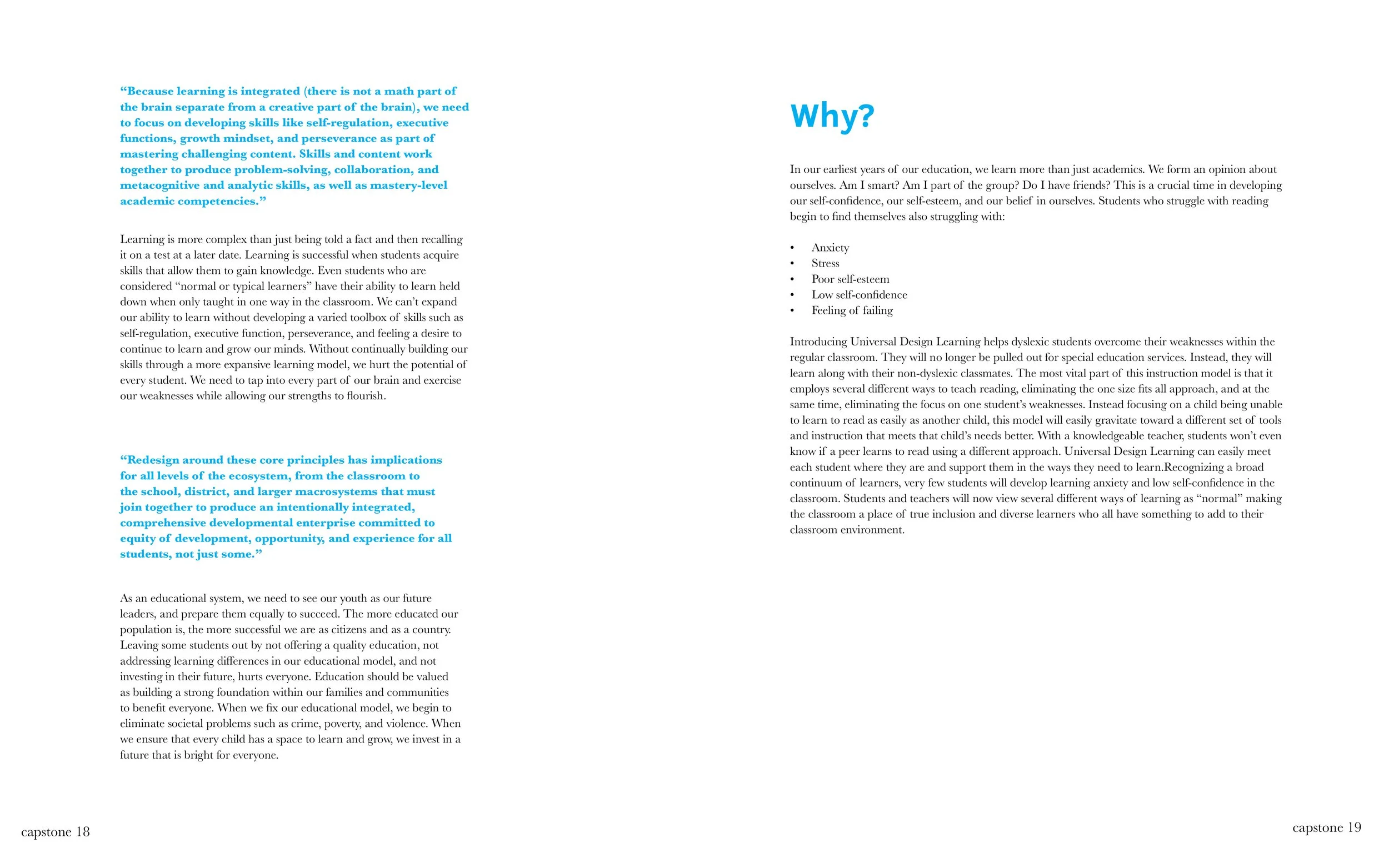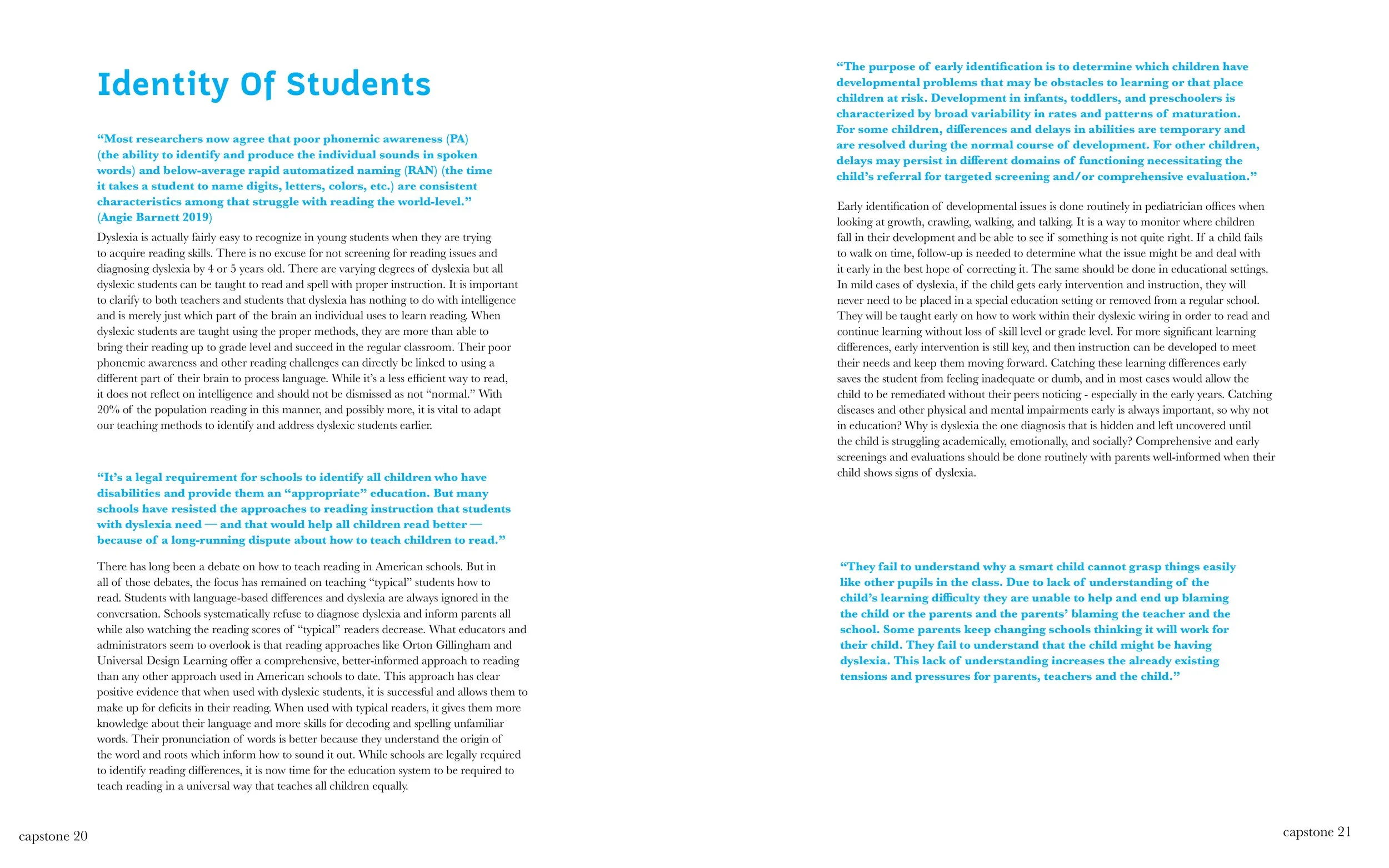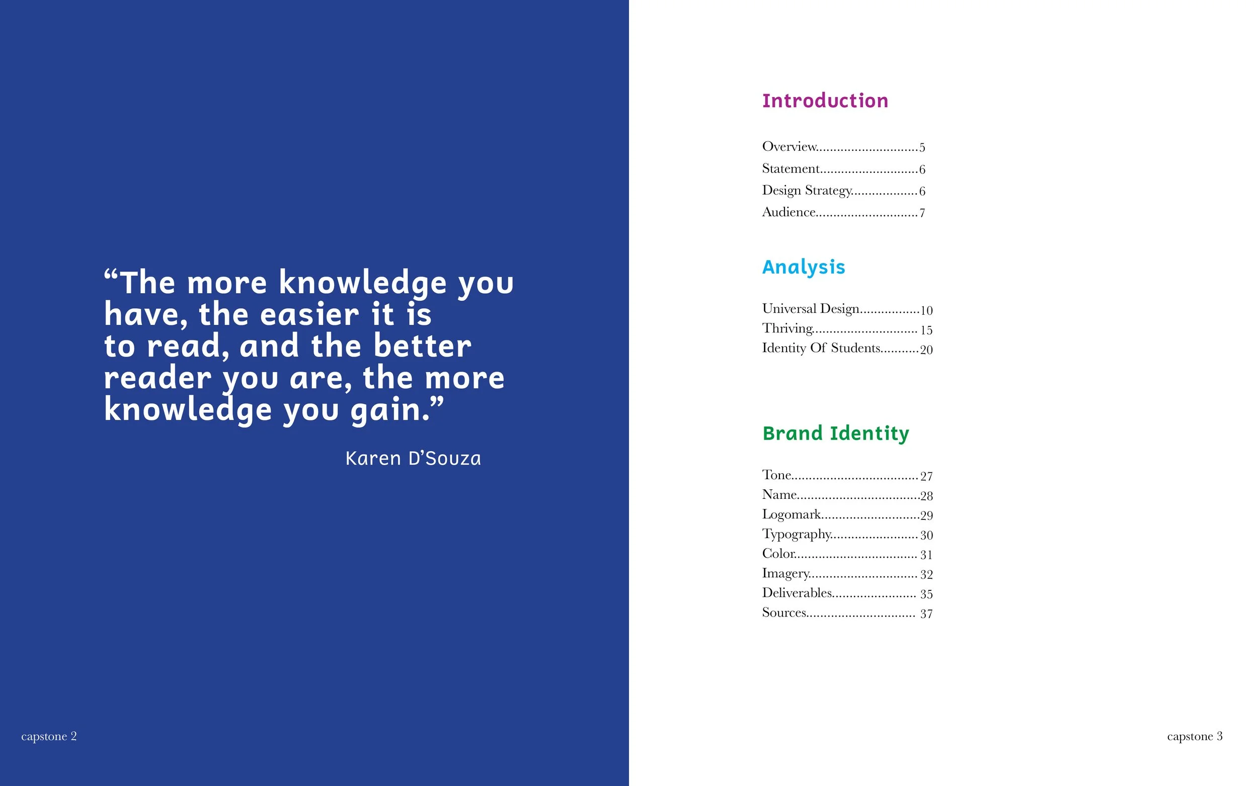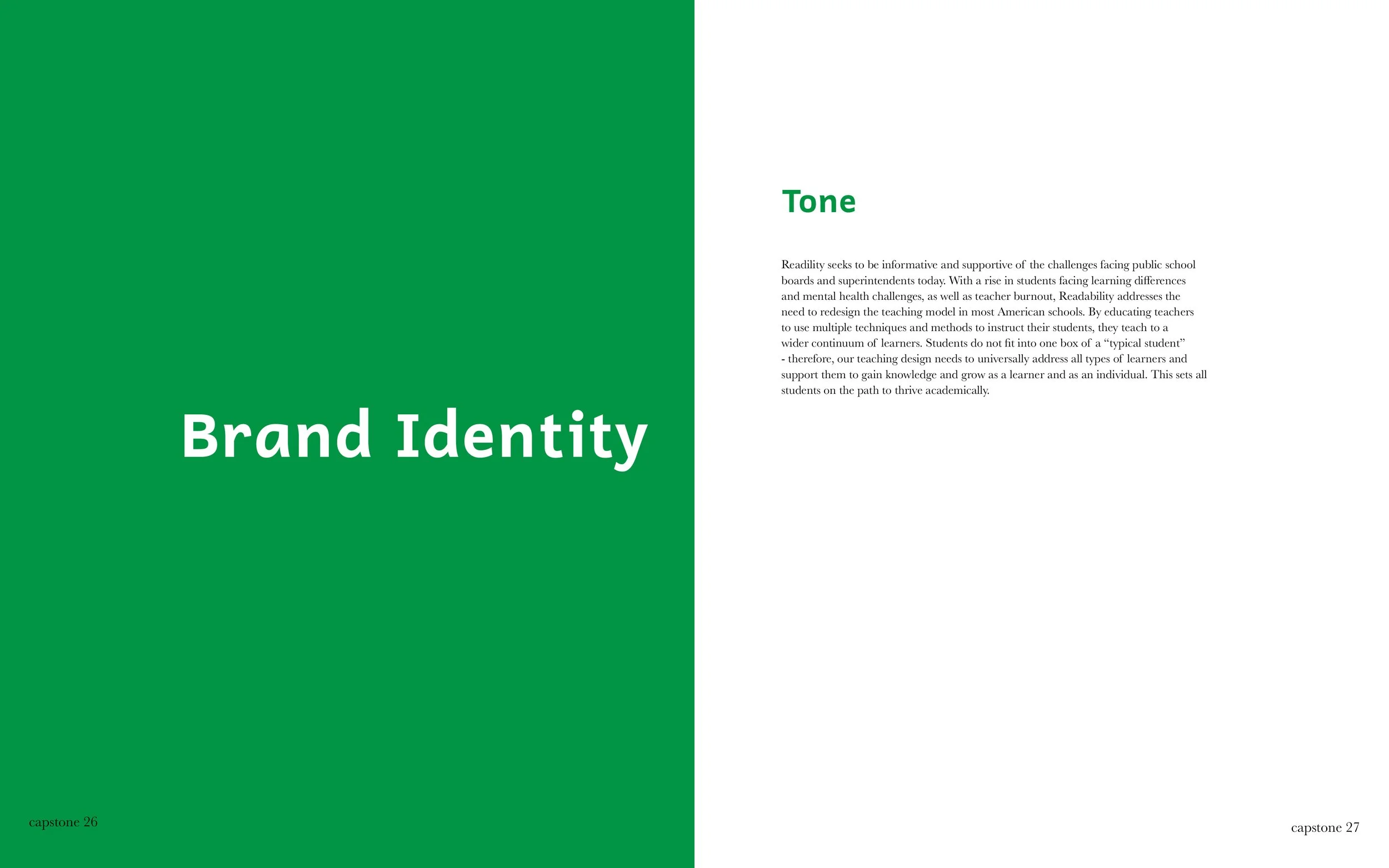 Capstone was a senior project in my BFA degree. I spent an entire semester researching dyslexia students and the education they receive in public schools. My project is called Readability and I created brochures and materials to help educate public school board members, principals, superintendents, and state legislators about the most effective ways to educate young students with dyslexia.